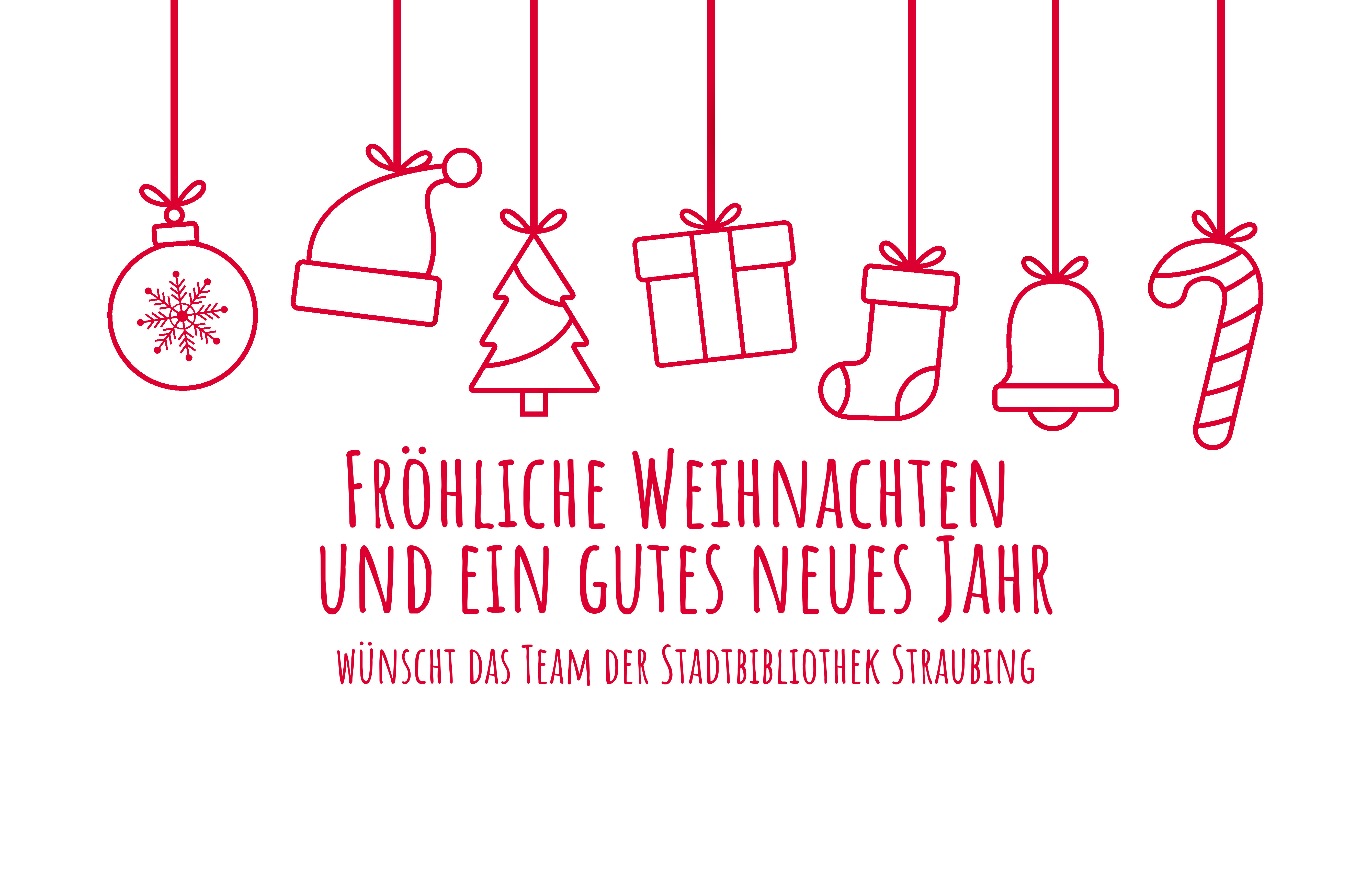 Das Team der Stadtbibliothek Straubing wünscht Ihnen und Ihrer Familie frohe Weihnachten, erholsame Feiertage und einen guten Start ins neue Jahr!